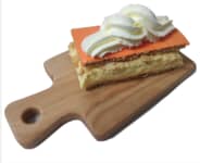 Boterdeegbodem met een room/spijs vulling. Afgewerkt met Zwitserseroom, botercreme, caramel, slagroom en chocolade.
